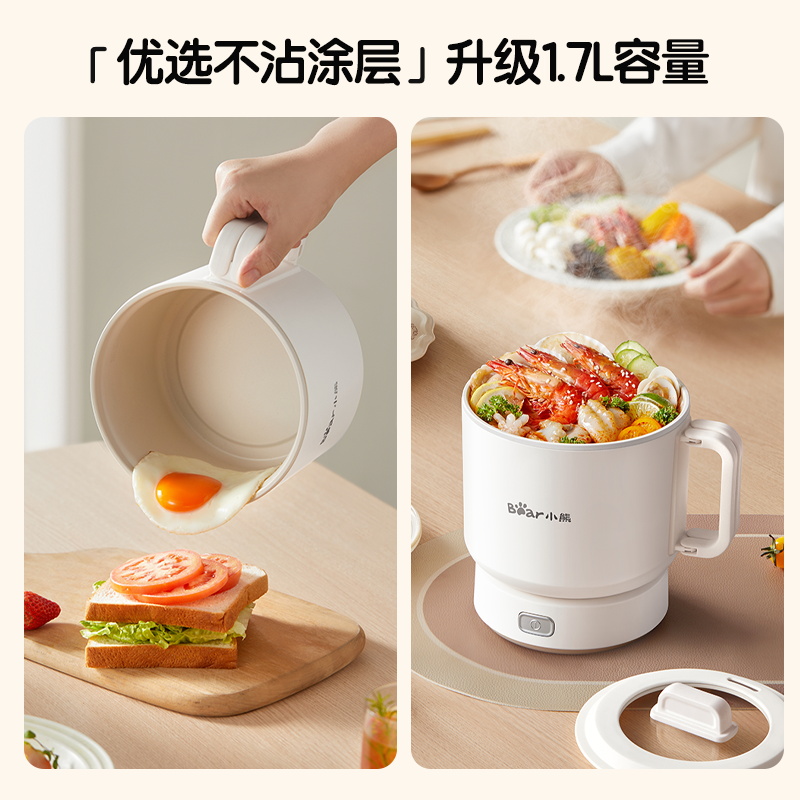 小熊电煮锅分体式 多功能小型便携折叠小电锅宿舍旅行烧水壶泡面锅
