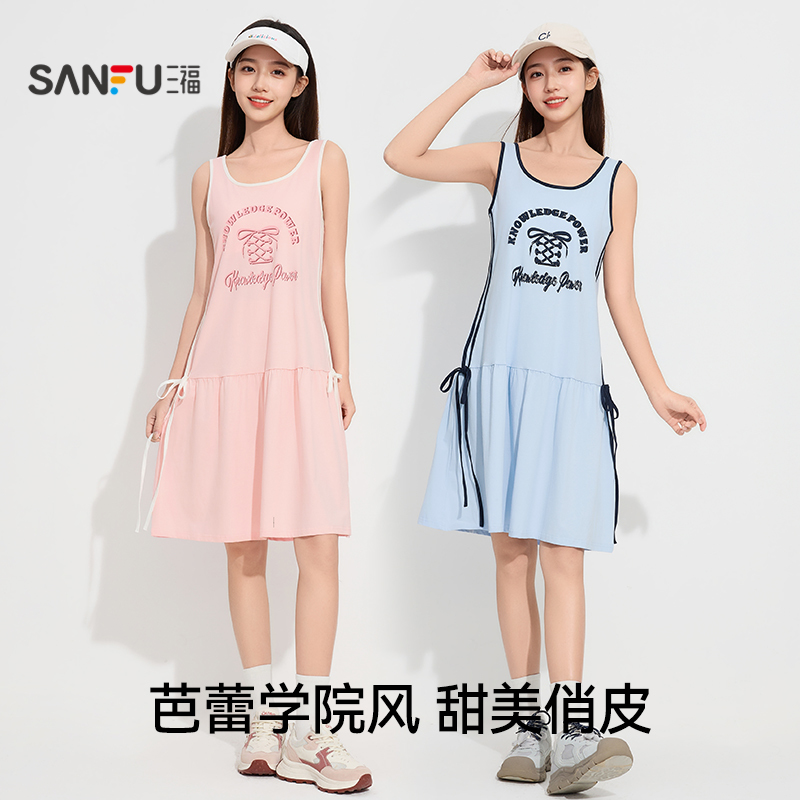 三福女夏季 凉感抗菌可外穿家居服495628 芭蕾学院风带杯背心裙
