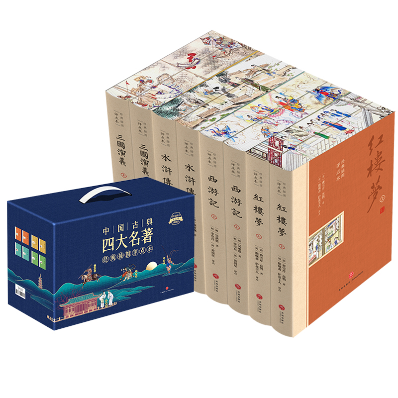 四大名著原著正版 红楼梦三国演义水浒传西游记课外阅读书籍人教完整版 全套共8册 足本无删减点评初高中生青少年版 礼盒装 刷边版