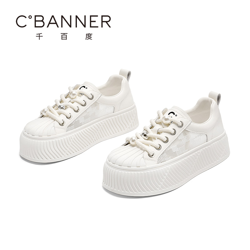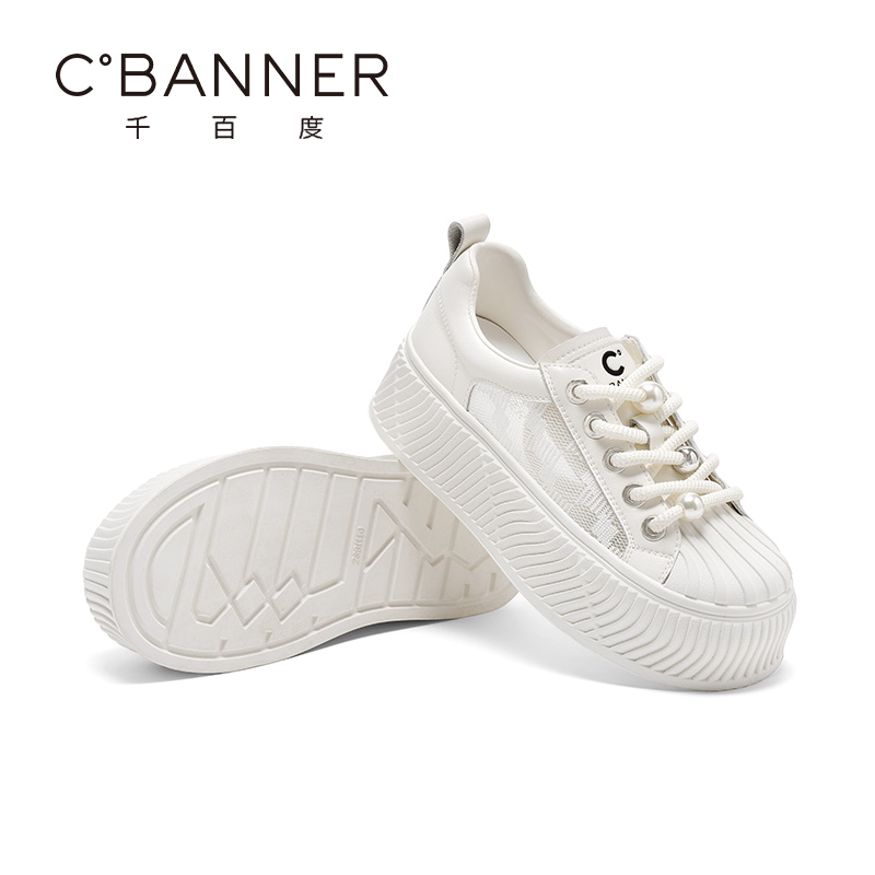 百搭皮面贝壳头板鞋 千百度休闲鞋 厚底增高小白鞋 新款 女 女2025秋季