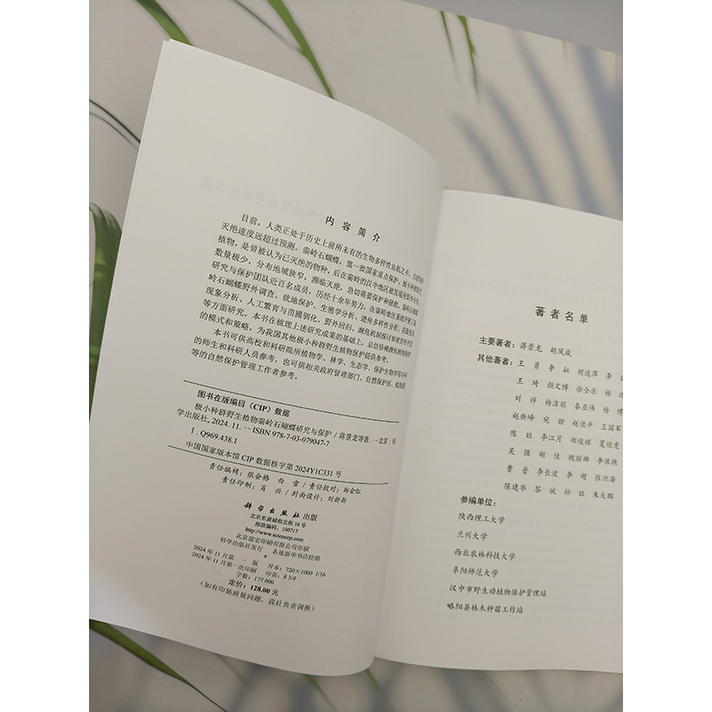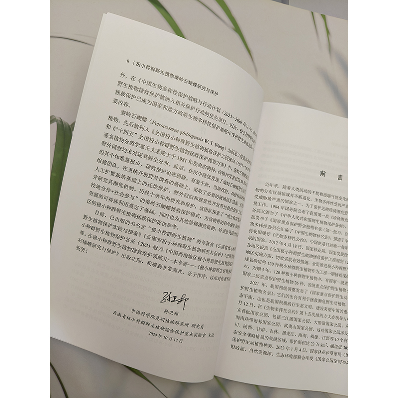 人工繁育与苗圃驯化 花器变异现象分析 濒危机制探讨和观赏性研究指南 秦岭石蝴蝶野外调查 极小种群野生植物秦岭石蝴蝶研究与保护