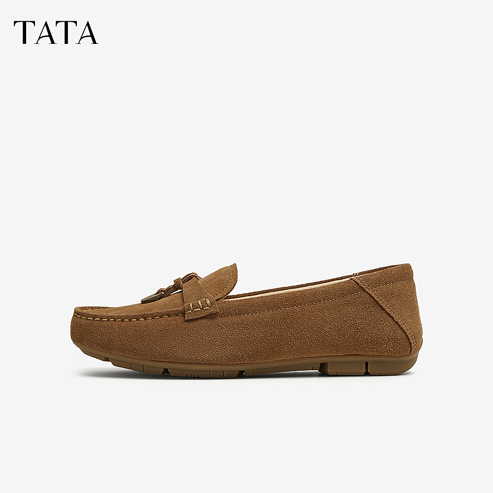 2025秋新CXV01AA5 棕色真皮平底单鞋 TATA他她英伦一脚蹬乐福鞋 女鞋