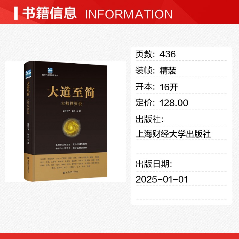 励志 社 复利王子 上海财经大学出版 图书籍 新华书店正版 金融投资经管 著 海天 大师投资说 大道至简