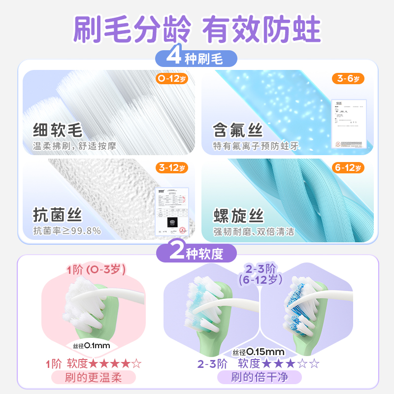 12岁训练护齿乳牙儿童清洁2支装 牙刷 舒比拓婴幼儿0