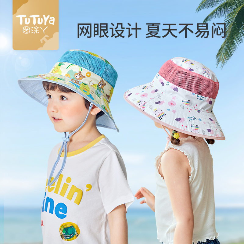 儿童防晒帽小宝宝帽子夏季 遮阳女童渔夫帽男童婴儿太阳大帽檐 薄款