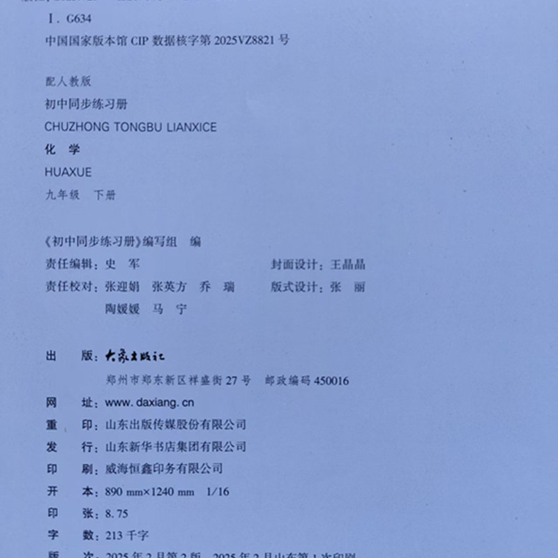 下学期初三9年级化学同步练习 社初中九年级化学下册同步配套练习册配人教版 2025春配人教版 初中同步练习册化学九年级下册大象出版