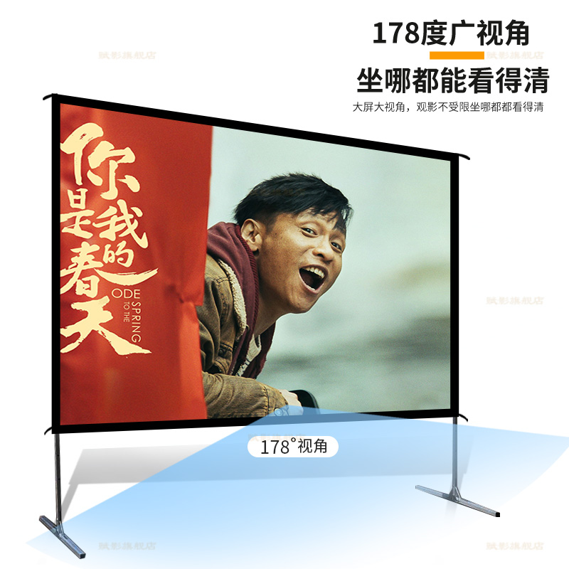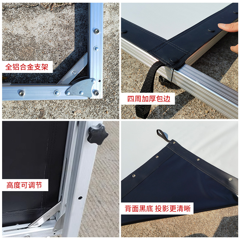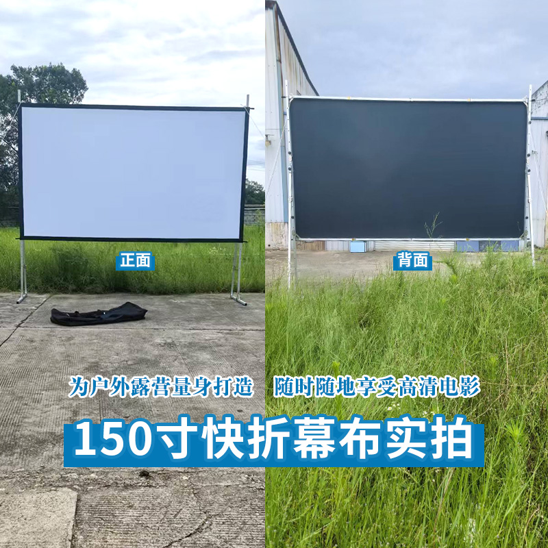 快速折叠幕布露天户外露营移动投影幕便携式 支架幕布支持4K高清幕布120寸150寸200寸正投背投室外投影屏幕
