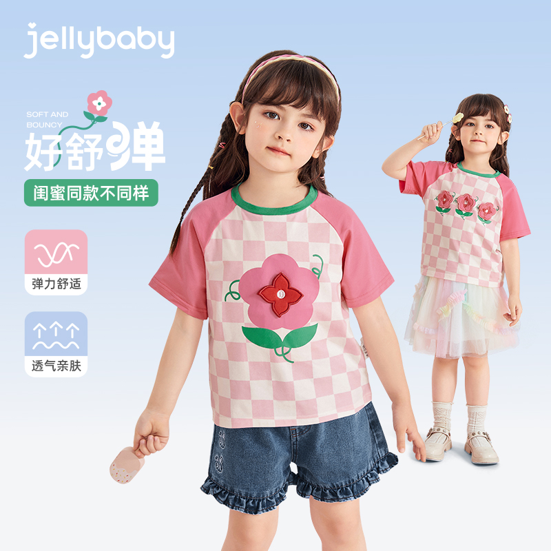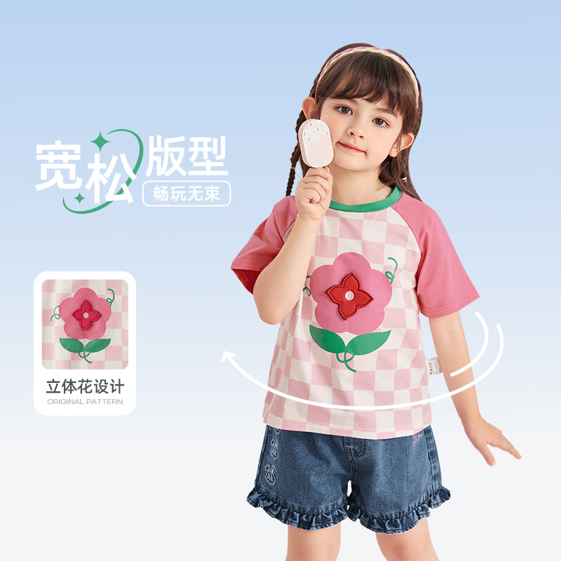 洋气3岁小女孩夏季 女童t恤2025新款 短袖 宝宝女宝薄款 上衣 儿童夏装