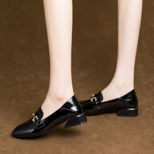 女平底英伦风真皮小皮鞋 2025新款 乐福鞋 软皮方头单鞋 春秋 漆皮女鞋