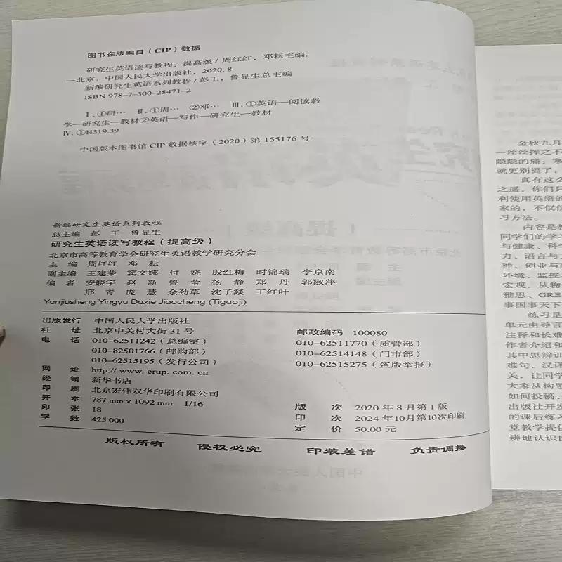 邓耘 9787300284712 提高级 社 中国人民大学出版 著 周红红 新编研究生英语系列教程 数字教材版 研究生英语读写教程 附学习卡