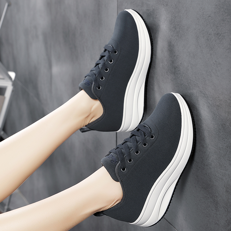 女鞋 百搭圆头系带女单鞋 坡跟摇摇鞋 松糕跟豆豆鞋 女韩版 老北京布鞋
