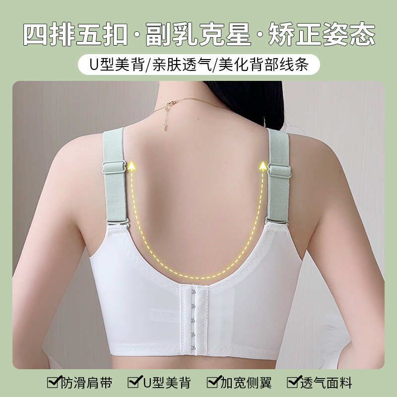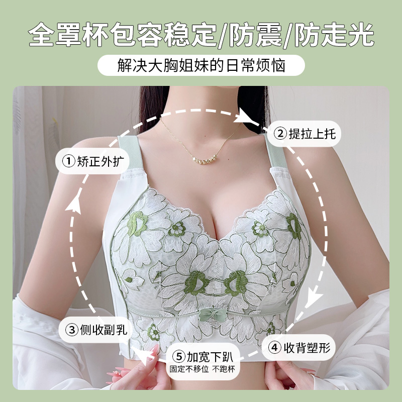 胖mm大码 聚拢收副乳防下垂调整型文胸罩 200斤大胸显小内衣女薄款