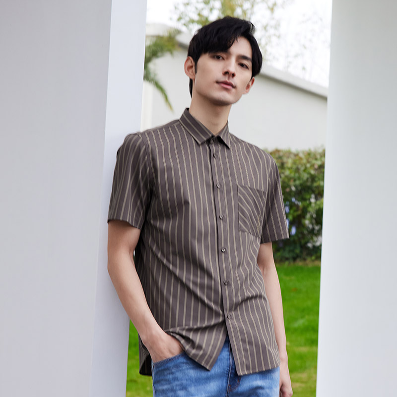 竖条纹休闲短袖 衬衫 男2024夏季 修身 才子男装 新款 衬衣 液氨工艺