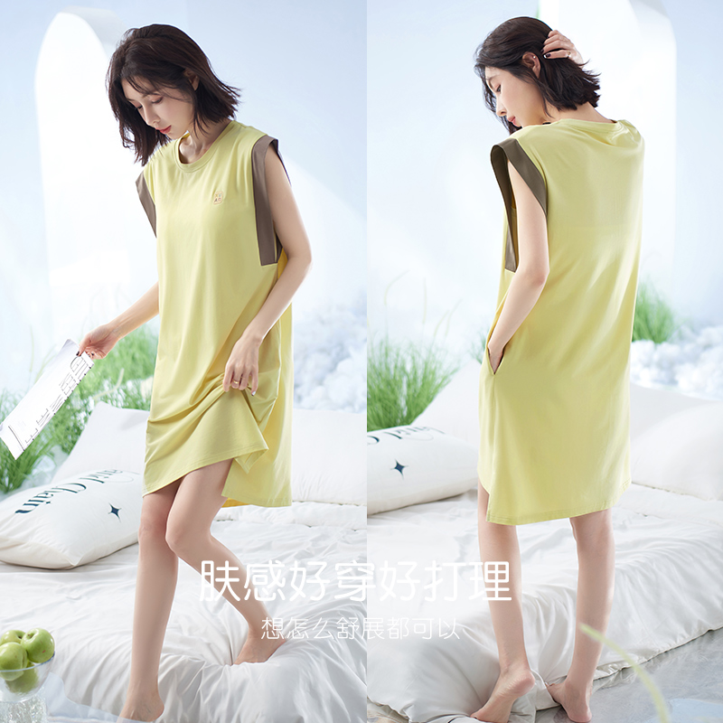 夏天大码 莫代尔棉背心无袖 睡衣家居服夏连衣裙 薄款 轩靓睡裙女夏季