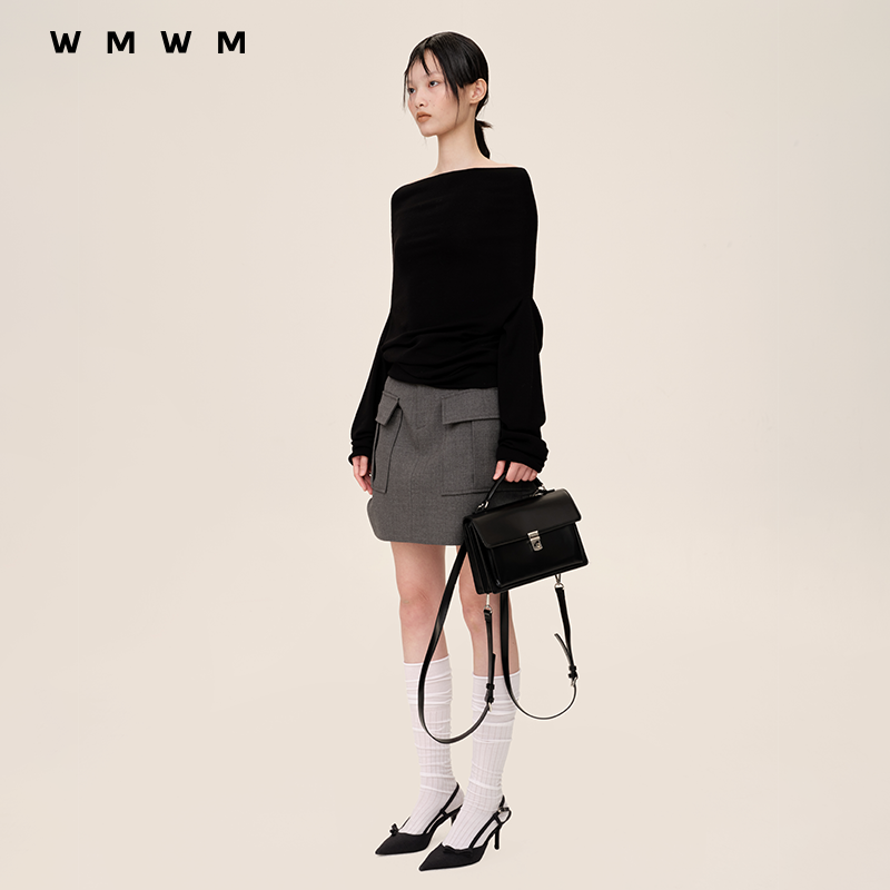 气质通勤简约工装 高级流行休闲设计感时尚 秋季 口袋短半裙 WMWM