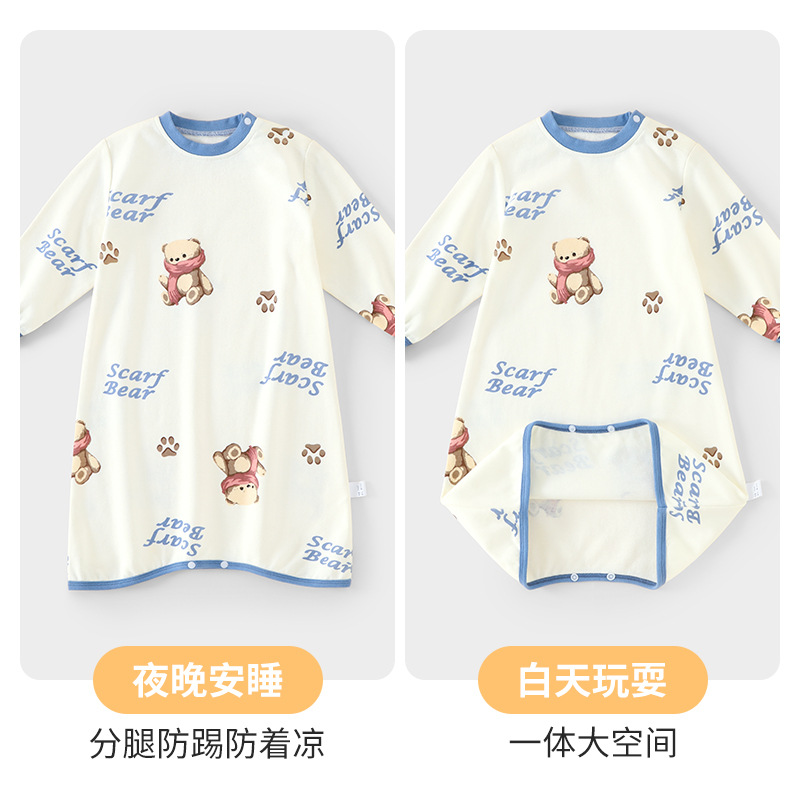 儿童长袖 a类纯棉连体睡衣男宝女宝中小童防踢可爱睡袍 睡裙春秋季