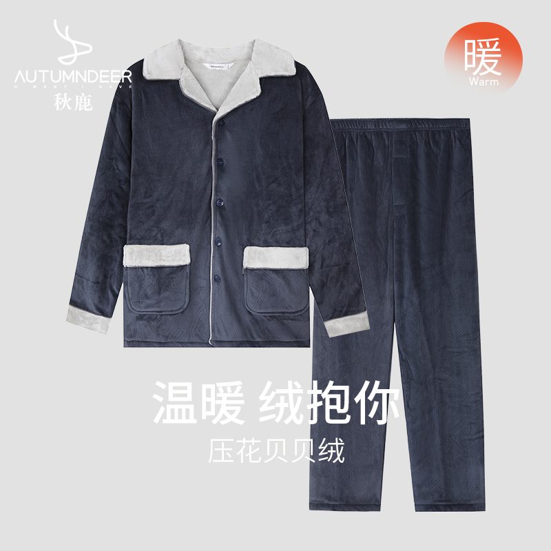 家居服可外穿秋冬套装 秋鹿 珊瑚绒男士 毛绒睡衣男冬季 商场清仓