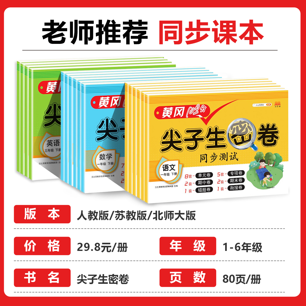 黄冈100分尖子生密卷小学生一二三四五六年级上册下册试卷测试卷全套人教版 测试卷期中期末冲刺卷教材同步练习册 语文数学英语单元