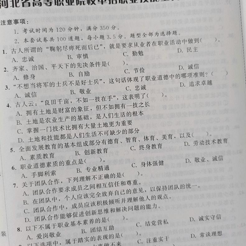 东师大2026河北省高等职业院校单招考试第九大类职业技能全真模拟试卷河北高职单招中职单招职教高考单独招生第九9大类财经商贸类