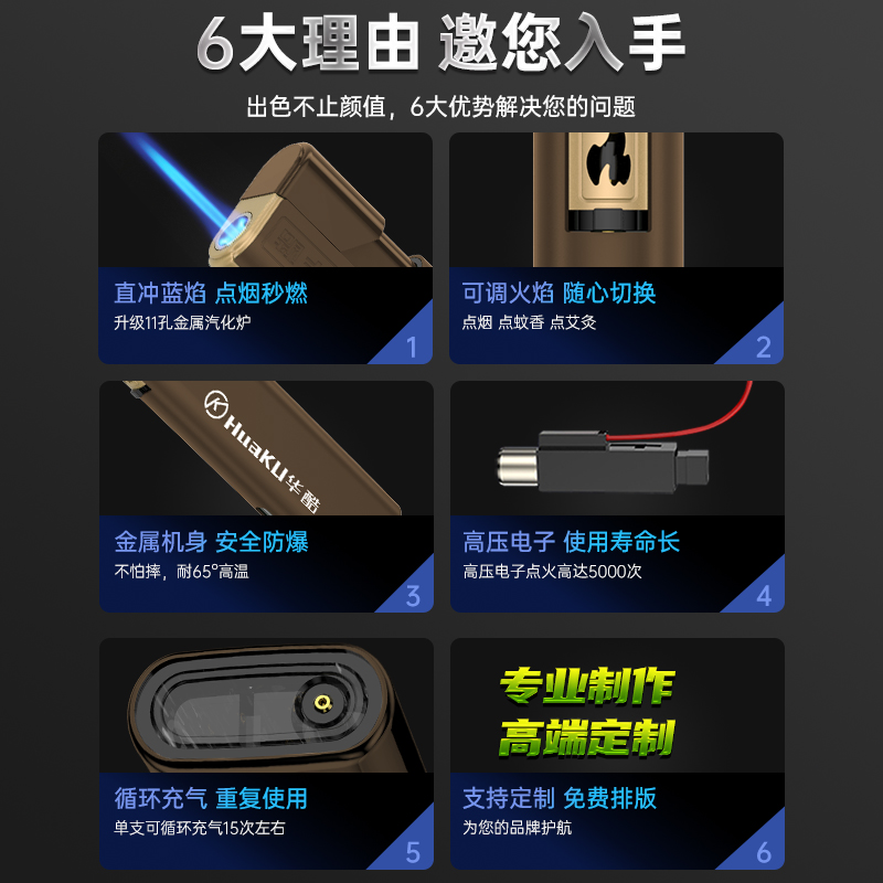 华酷新款 金属防风打火机防爆耐用一次性充气定制订做印字刻字批发