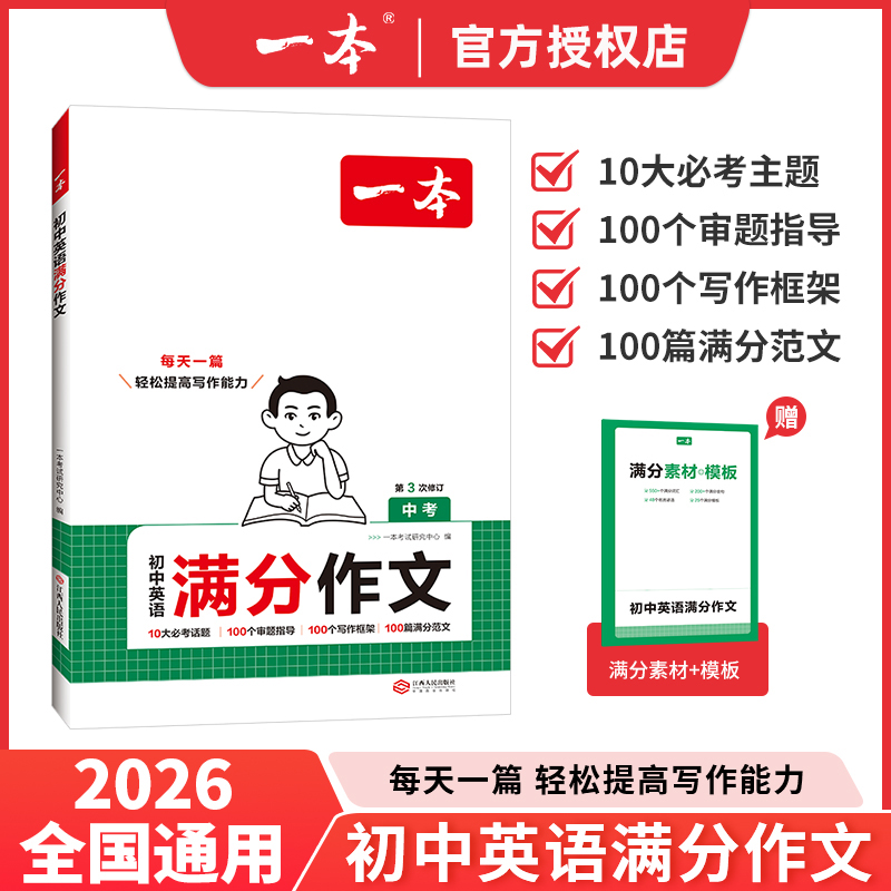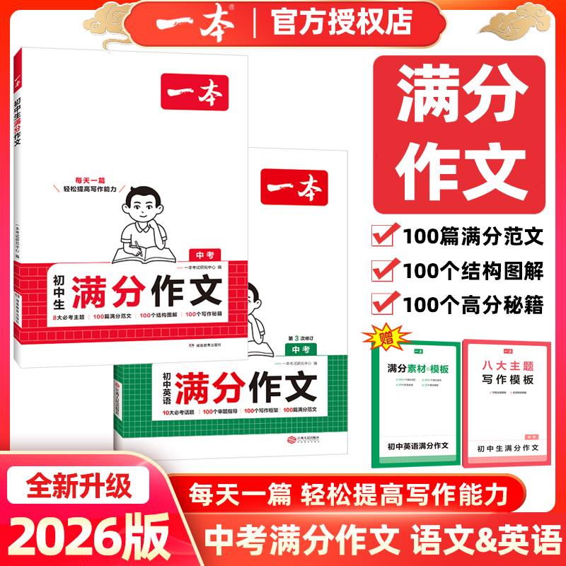 2026版 一本初中语文英语满分作文中考作文热考素材速用模板满分范文结构图解高分笔记大全书初一二三初中生七八九年级写作素材技巧