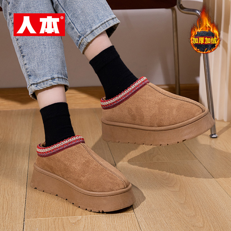 鞋 人本雪地靴棉鞋 加绒加厚东北女款 厚底保暖女鞋 子 女冬天2025新款
