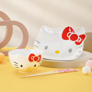 凯蒂猫碗碟套装 卡通盘子碗筷组合 家用陶瓷餐具吃米饭碗2025年新款