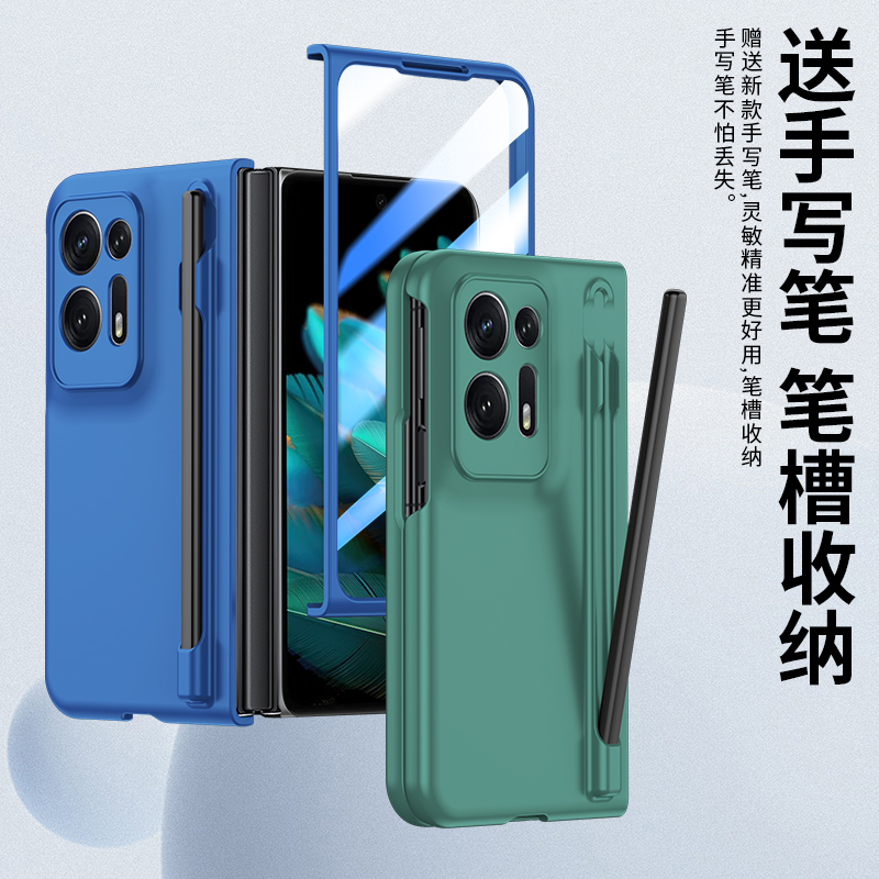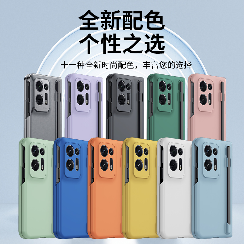 oppoFindN2手机壳折叠屏保护套findn2全包防摔肤感硬壳oppo简约时尚 配色findn2自带钢化膜笔槽手写适用于 个性