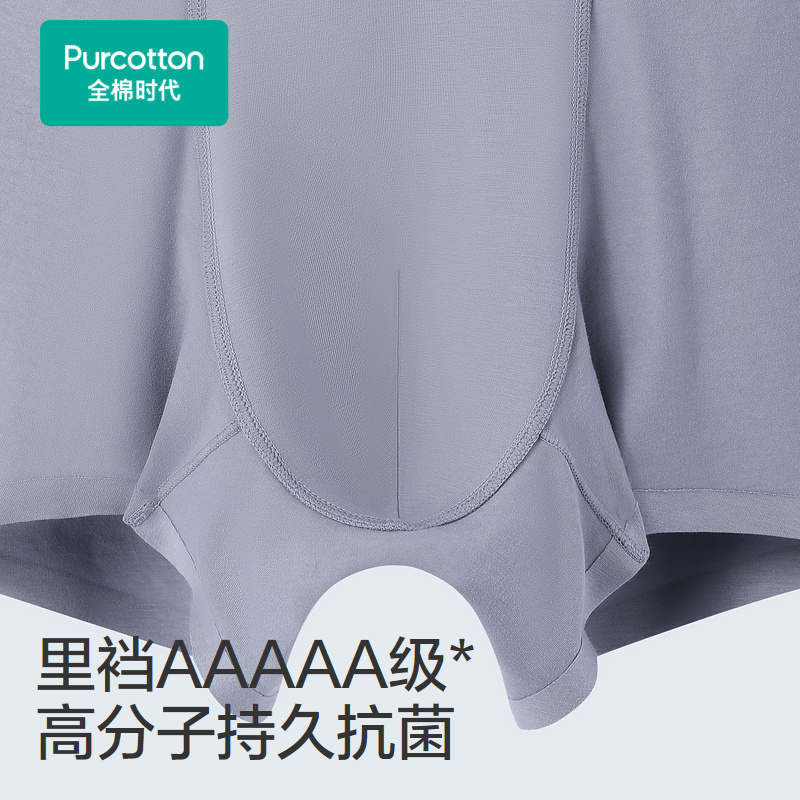 高弹舒适中腰四角裤 全棉时代男士 纯棉内裤 呼吸感抗菌内裤 平角内裤