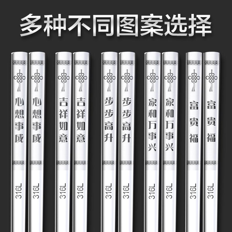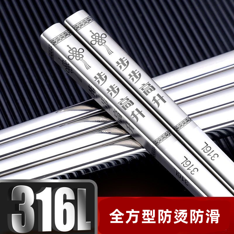 双枪316L不锈钢筷子家用防滑防烫304食品级抗菌防霉快子高档酒店