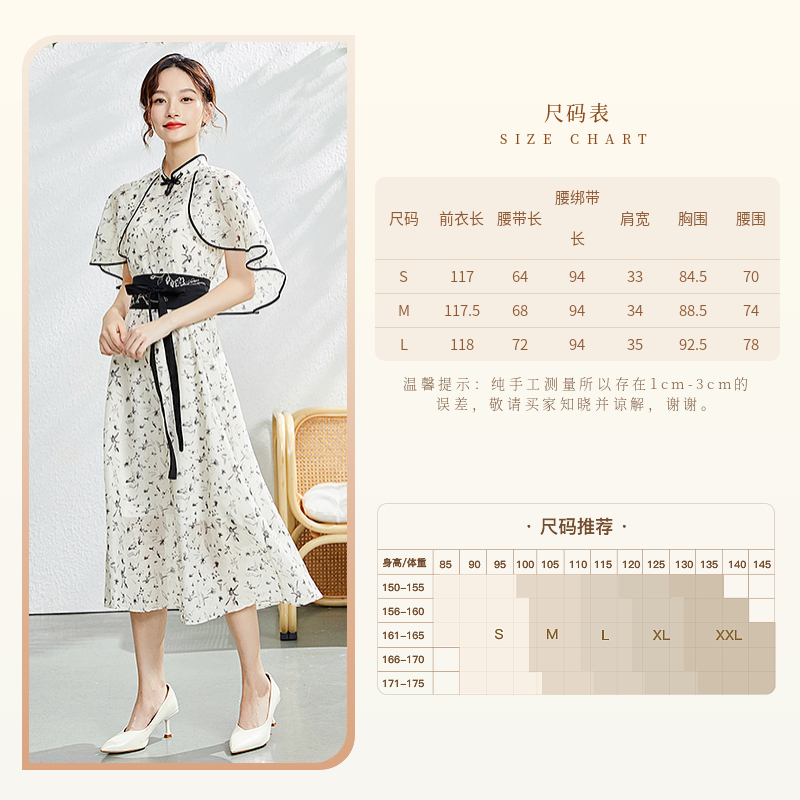 连衣裙01132LQ08187 国风立领收腰封碎花雪纺短袖 固执夏季 新款