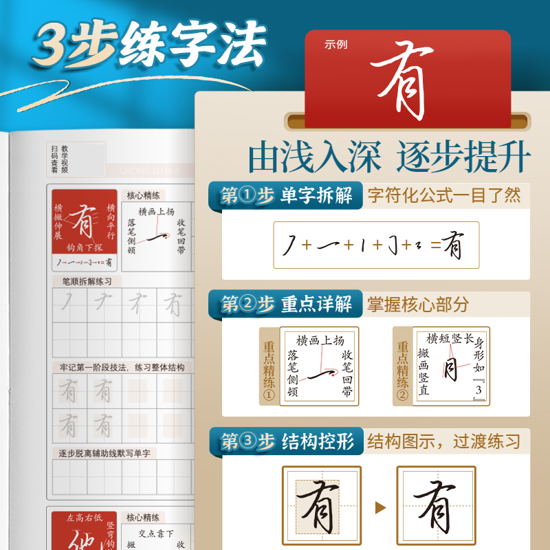 重塑笔迹行楷高频字速成公式 字帖田英章行楷字帖高中生成人控笔训练字帖成年速成硬笔书法练字本笔画笔顺练字帖大学生女生漂亮字体