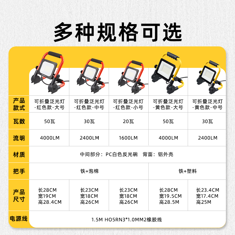 斯奈夫led投光灯大功率插电户外探照手提防水强光超亮室内照明灯