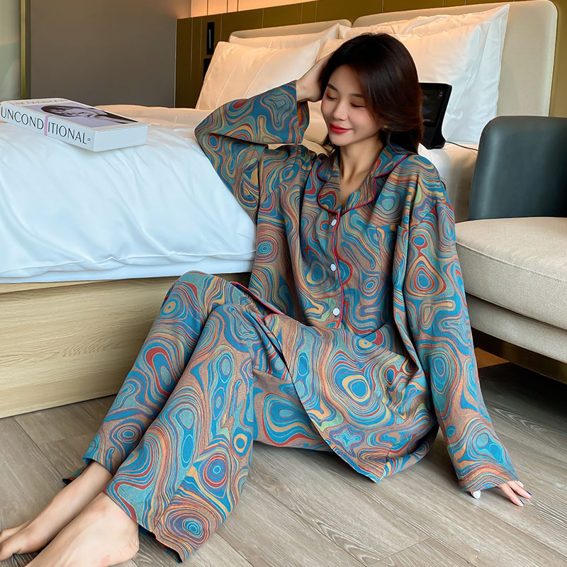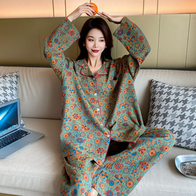 棉纱宽松家居服加肥加大秋冬 长裤 春秋大码 睡衣女200斤胖m纯棉长袖