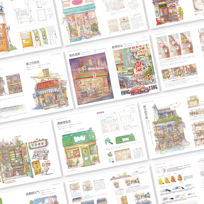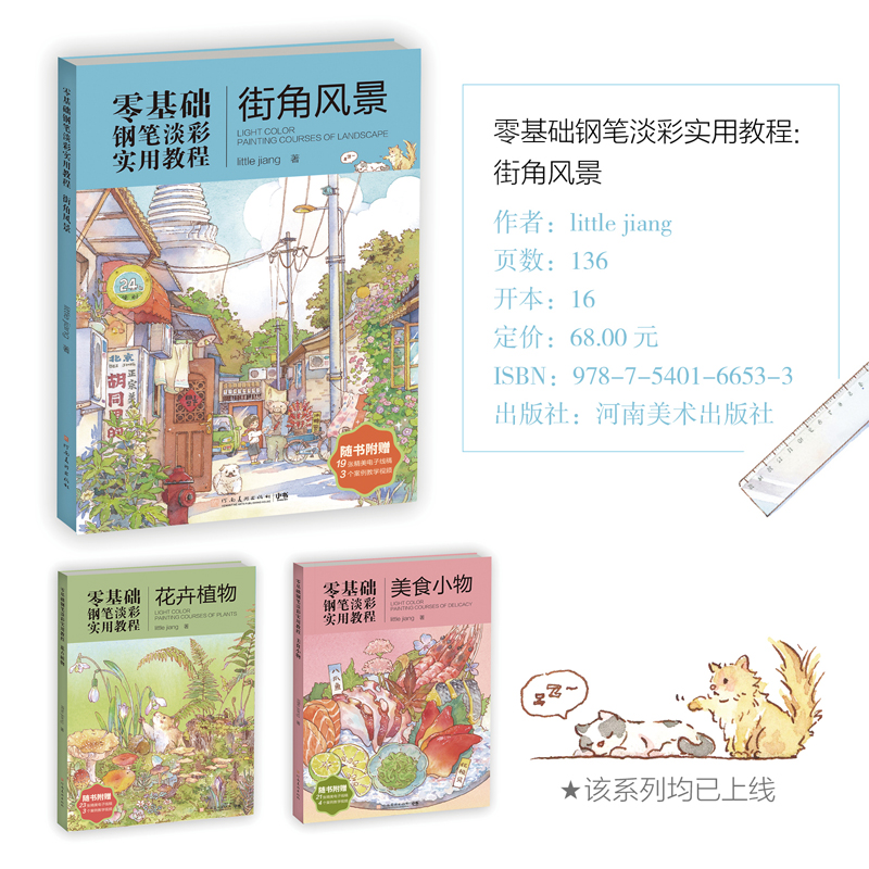 河南美术出版 街角风景 花卉植物日记手账插画视频教学 jiang著美食小物 社 22张精美街景手绘插图零基础钢笔淡彩实用教程little