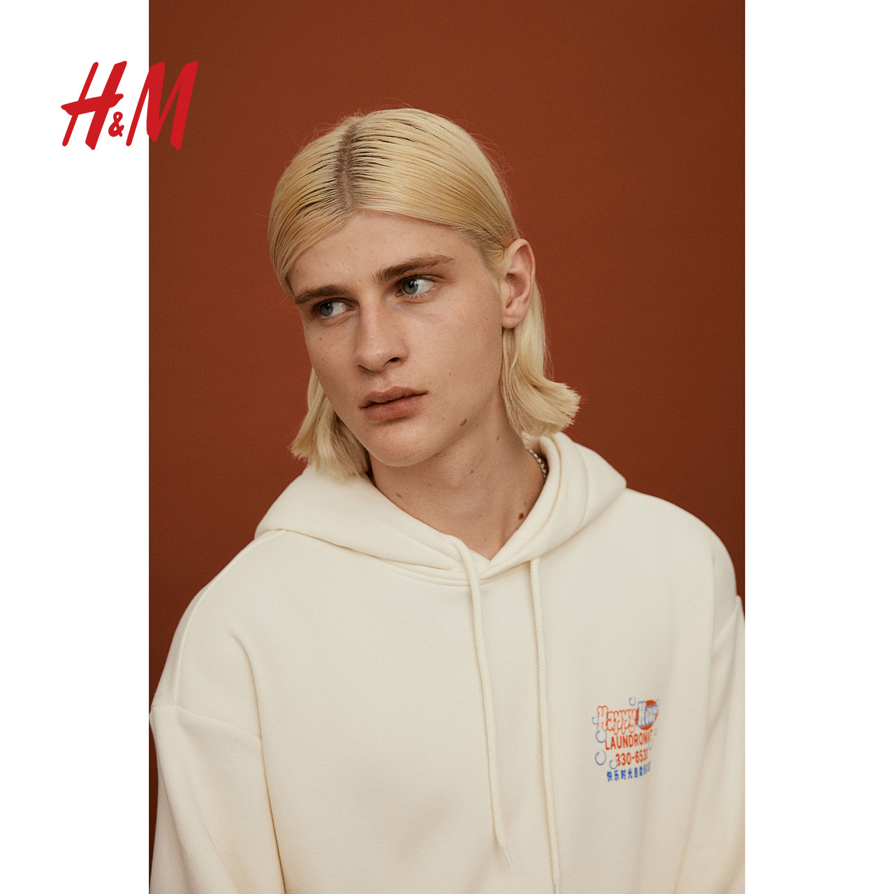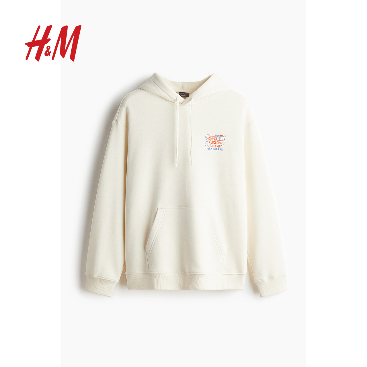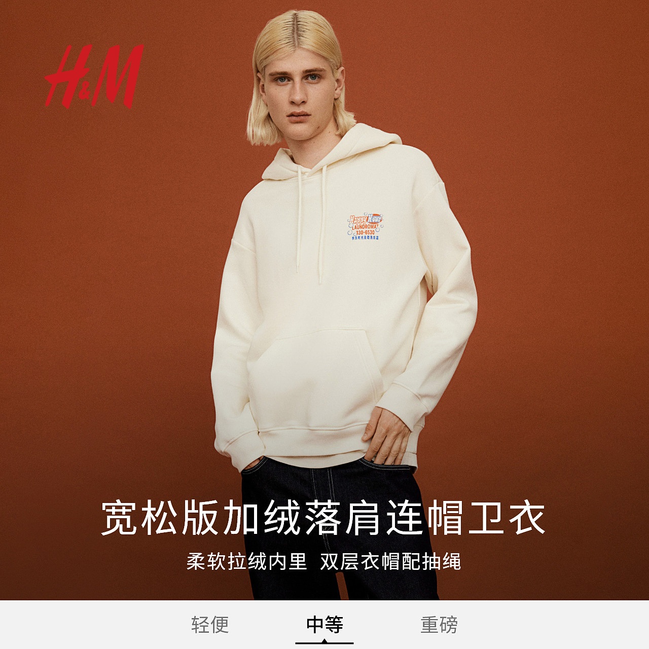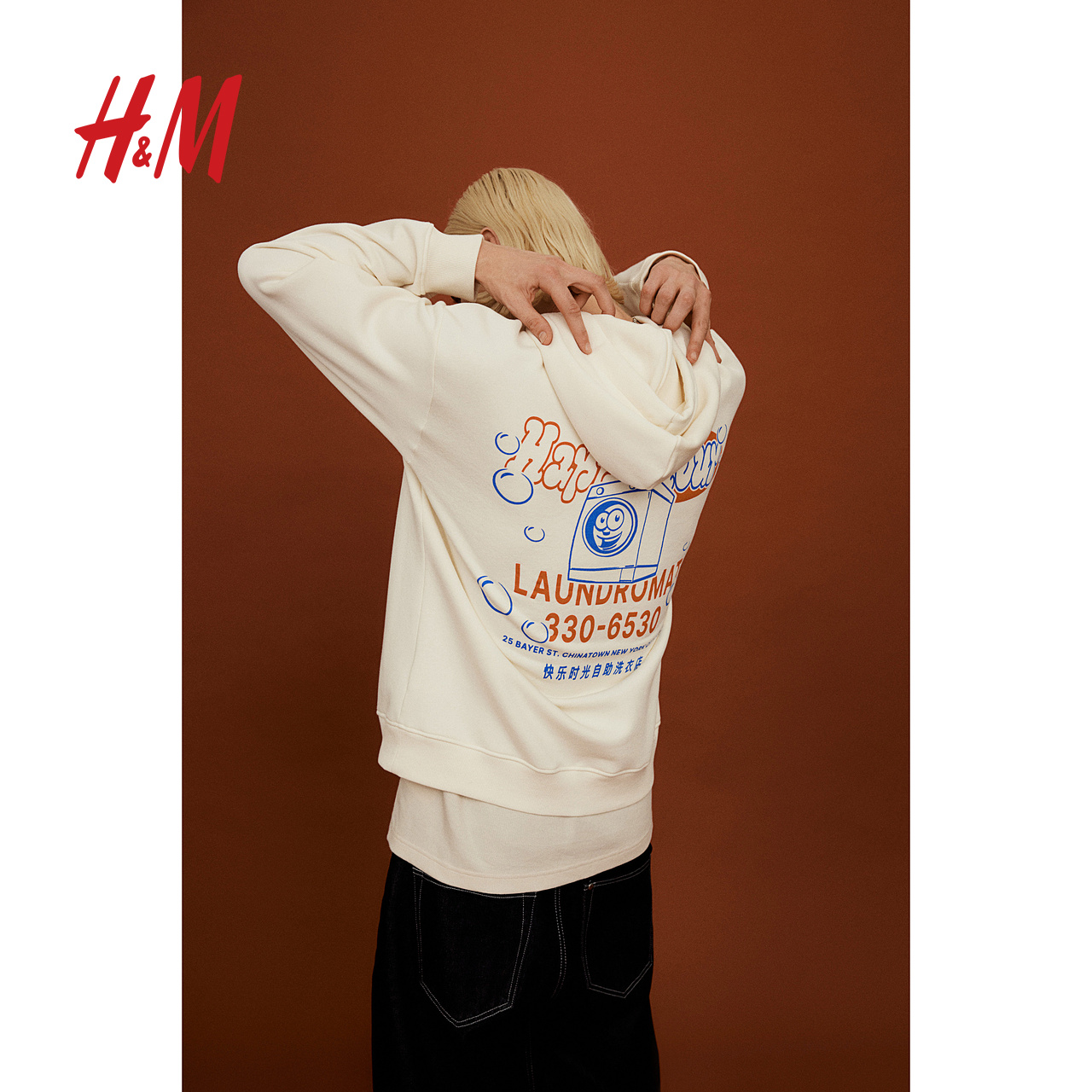 内搭连帽衫 HM男装 印花宽松加绒舒适落肩长袖 卫衣秋季 1122659 女装