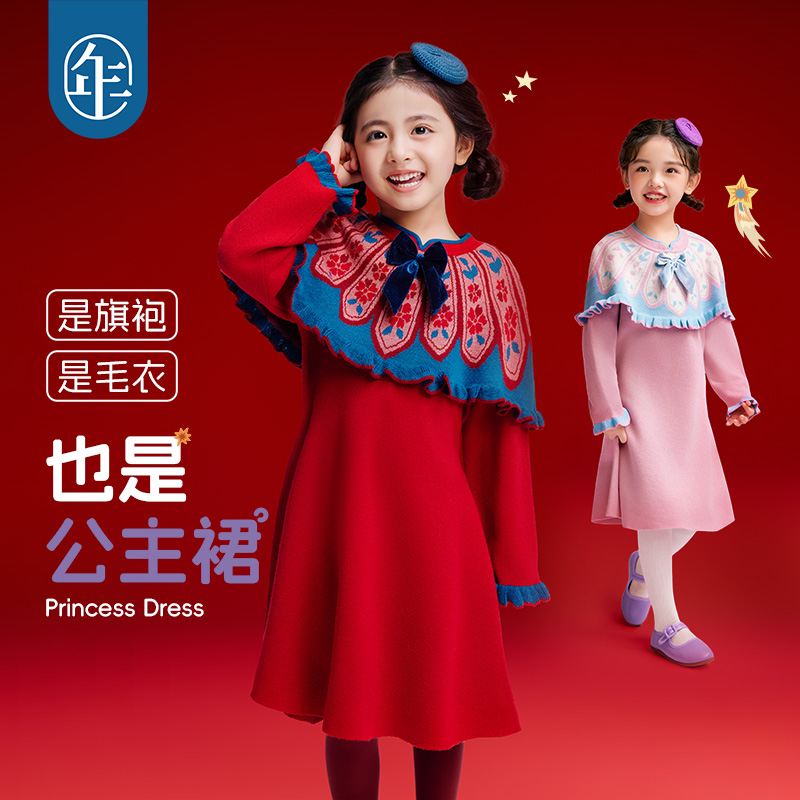 女童新年裙子宝宝拜年服过年衣服 冬装 年衣童装 儿童秋冬连衣裙新款
