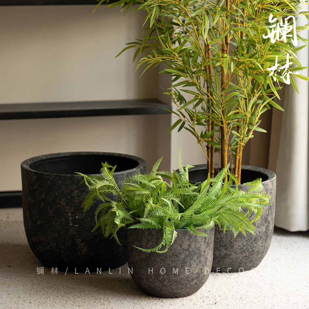 新款 北欧家用特大号花盆仿瓷高圆口加厚耐用阳台室内绿植树脂花盆