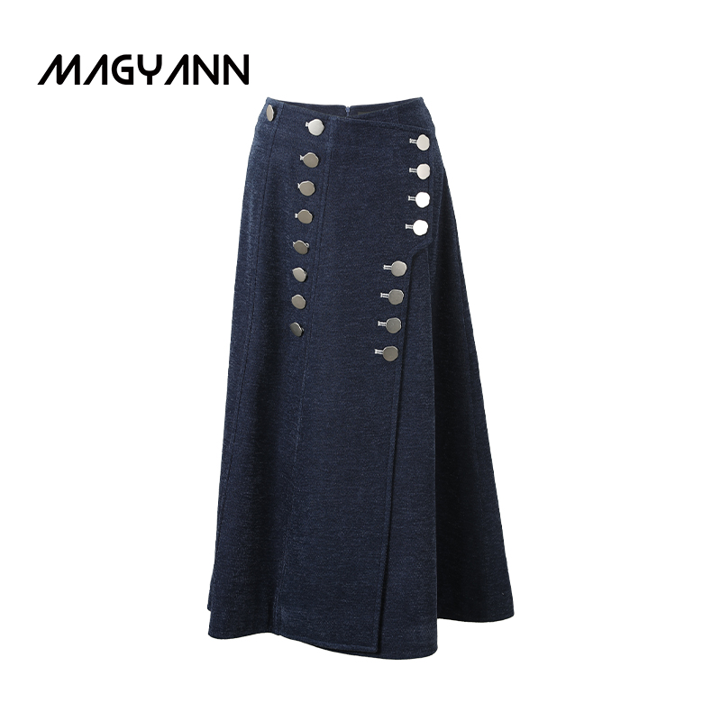 Magyann设计师原创2024秋优雅气质高腰时髦多排钮扣半身裙长裙女