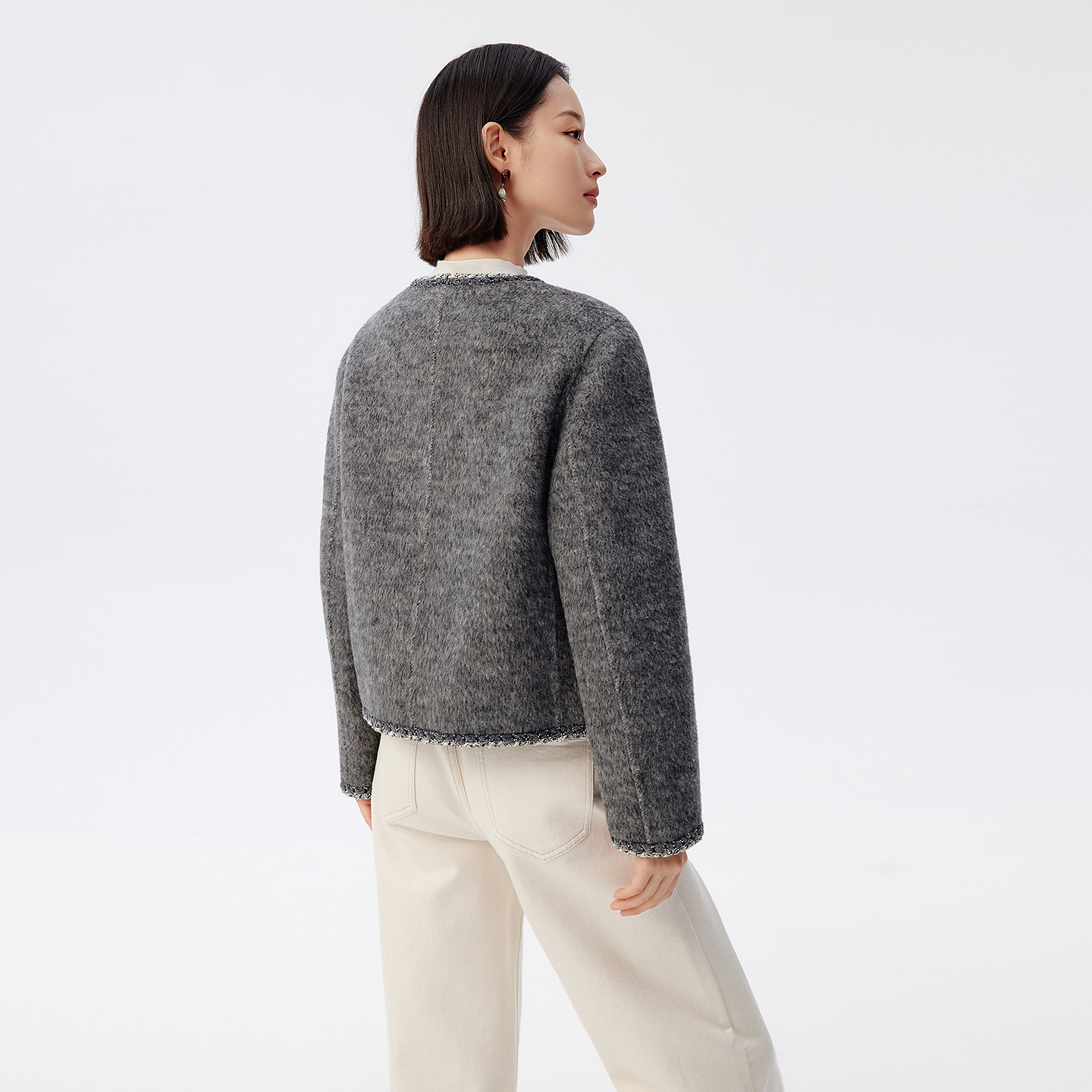 圆领大衣女小个子气质毛呢外套 高端羊毛双面呢短款 2025年春季 新款