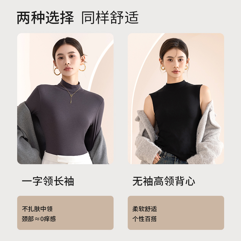 背心春秋新款 百搭无袖 亲肤透气上衣带胸垫长袖 猫人保暖内衣女薄款
