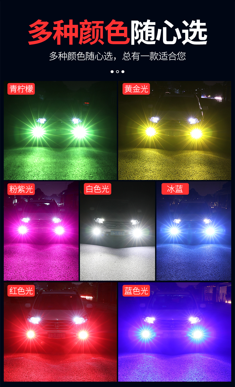汽车led超亮双色防雾灯泡9006H8H11H3h7改装 爆闪前雾灯青柠黄金眼