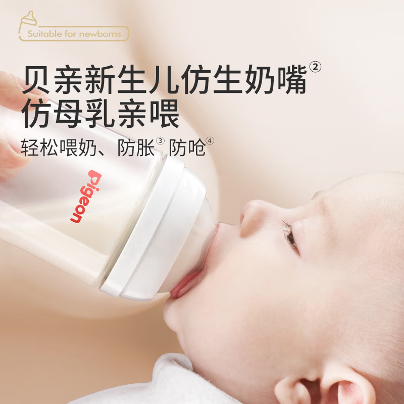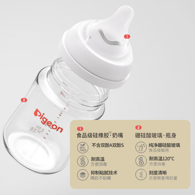 Pigeon贝亲婴儿宽口径玻璃奶瓶新生儿奶瓶0到6个月以上宝宝