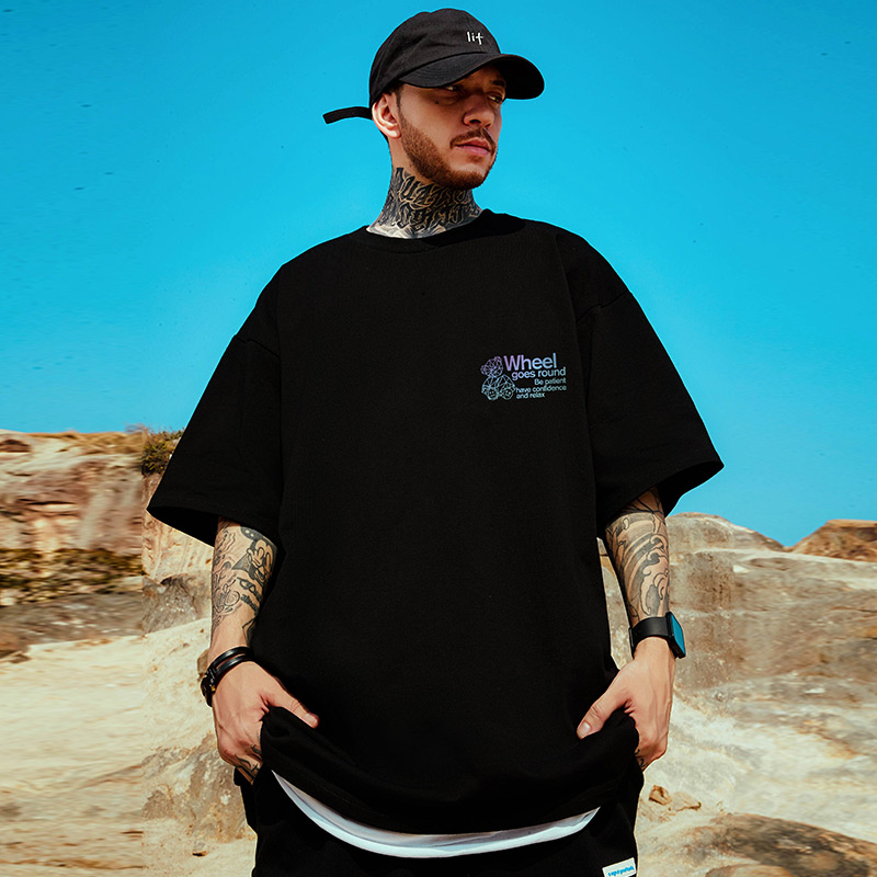 青少年中性潮牌半袖 小熊短袖 ins港风情侣装 男装 T恤加肥加大码 夏季