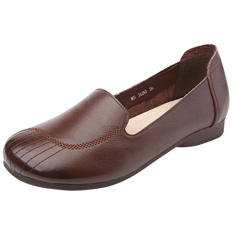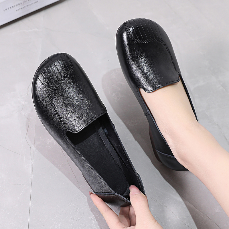女鞋 宽胖脚中年妈妈皮鞋 41一43夏季 真皮软底单鞋 2025新款 平底大码
