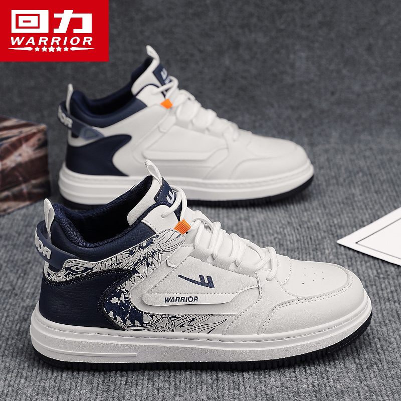 男鞋 子学生运动鞋 新款 皮面鞋 秋冬高帮休闲鞋 电池熊猫鸿星尔克板鞋