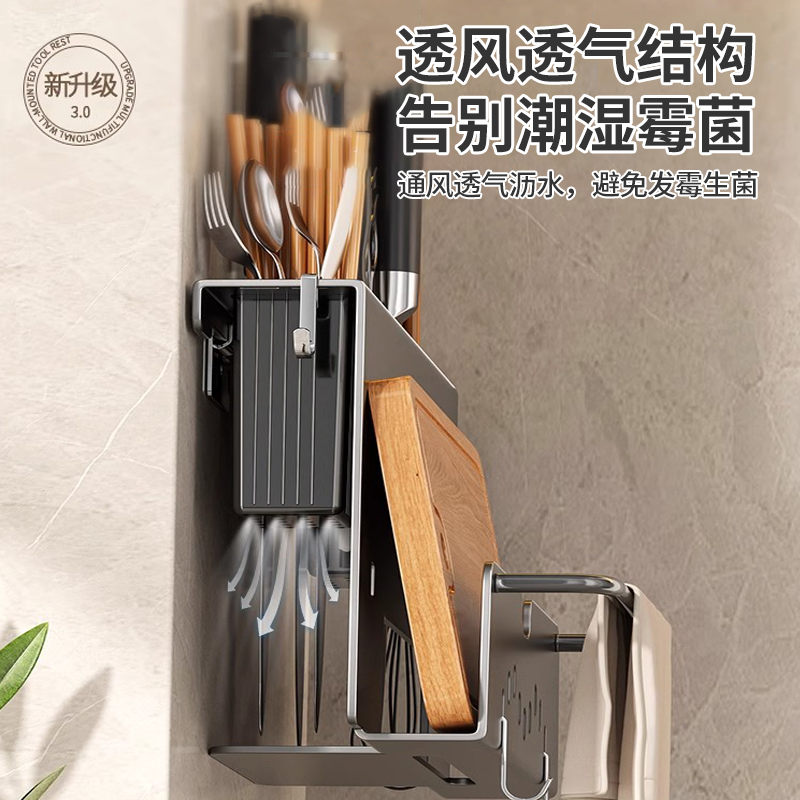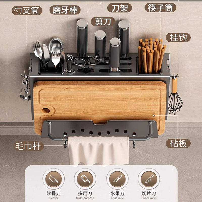 厨房刀架置物架免打孔筷子筒砧板菜板架壁挂刀具一体收纳架子