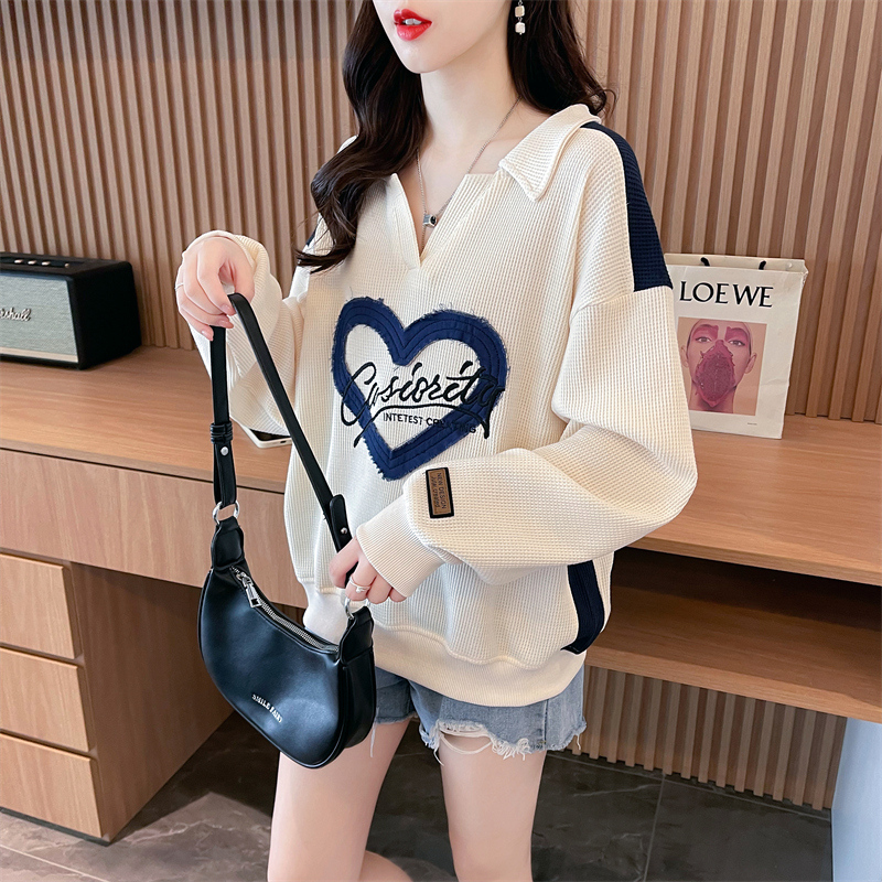 初秋翻领polo衫 设计感小众卫衣女春秋季 薄款 宽松大码 上衣外套 韩版