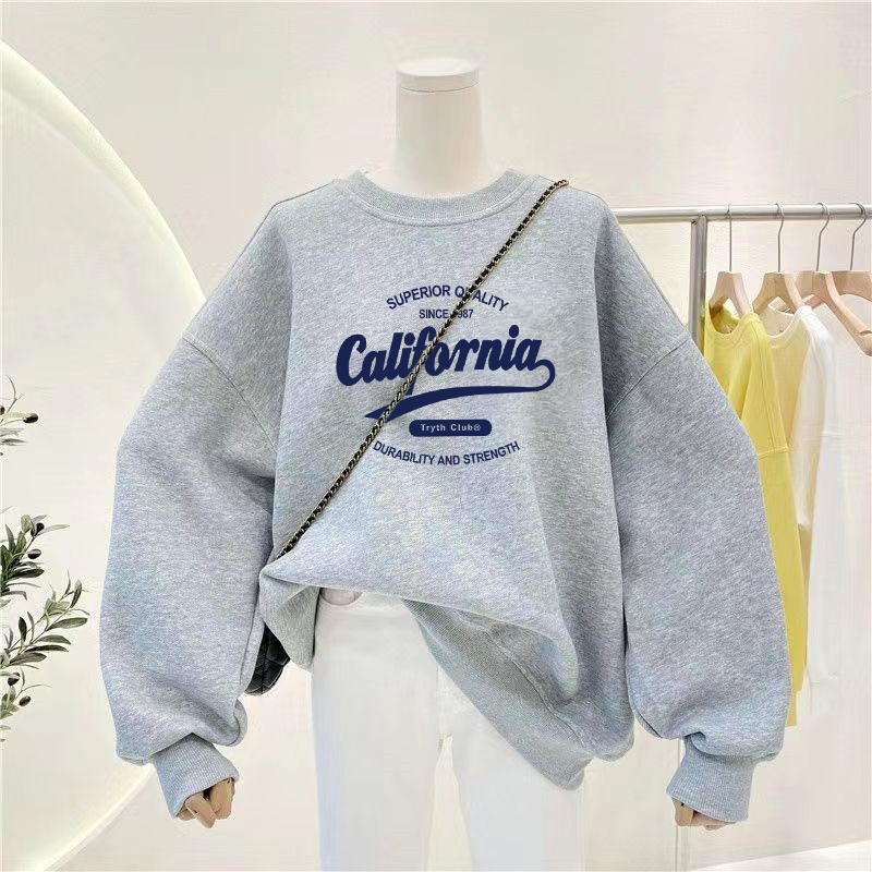 春秋冬新款 宽松休闲百搭上衣 简约字母圆领卫衣女加绒加厚基础款