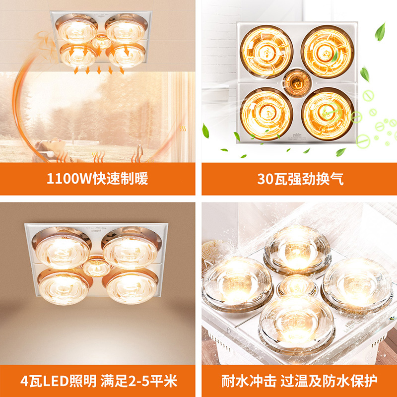 雷士照明灯暖浴霸壁挂式 集成吊顶多功能取暖排气扇一体浴室暖风机